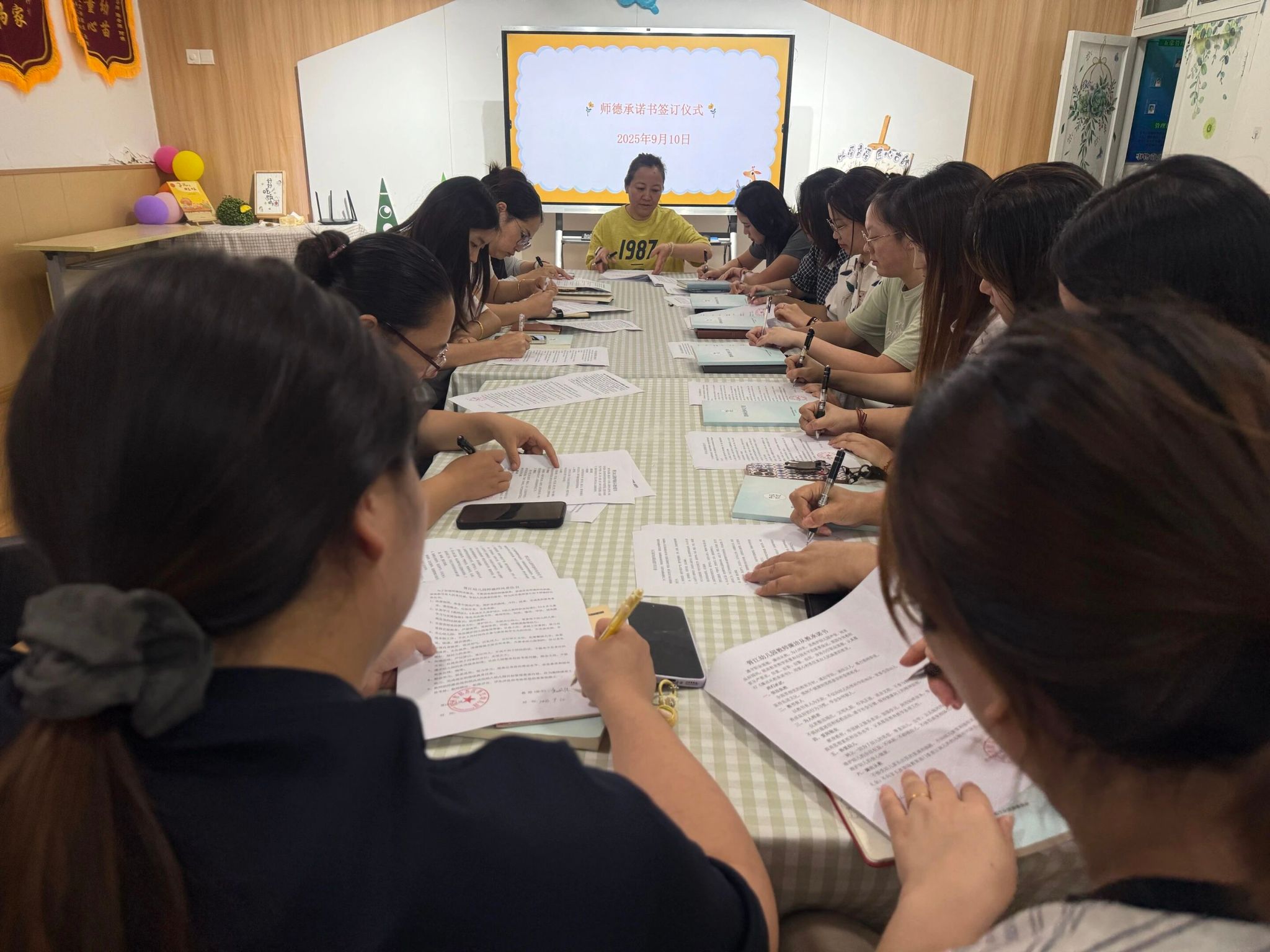 幼教之路,师德为基。活动中,全体教师郑重签订《师德师风责任书》《幼儿园教师廉洁从教承诺书》和《新时代幼儿园教师职业行为十项准则》。