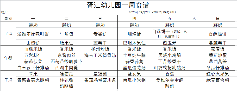 9月食谱(2025.9.22-9.28)
