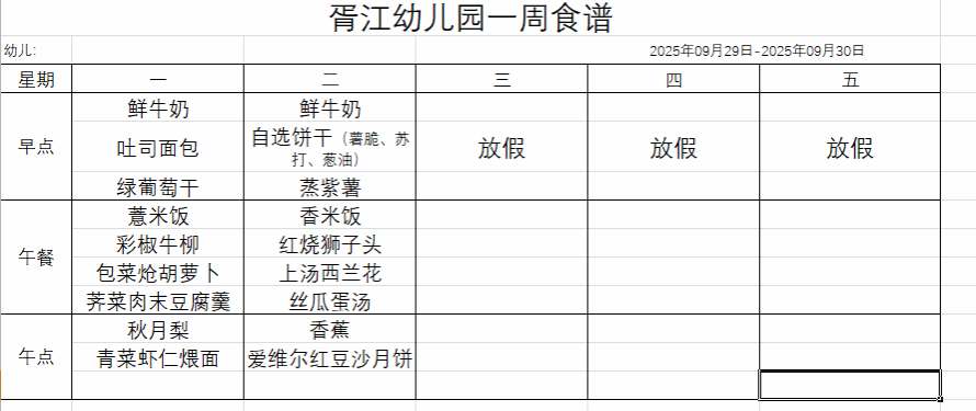 10月食谱(2025.10.9-10.11)