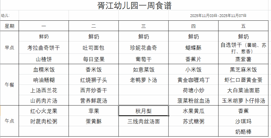 11月食谱(2025.11.3-11.7)